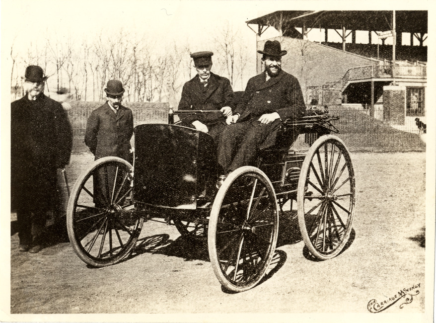 Motorists in Duryea phaeton, 1895 Chicago Times-Herald Race
