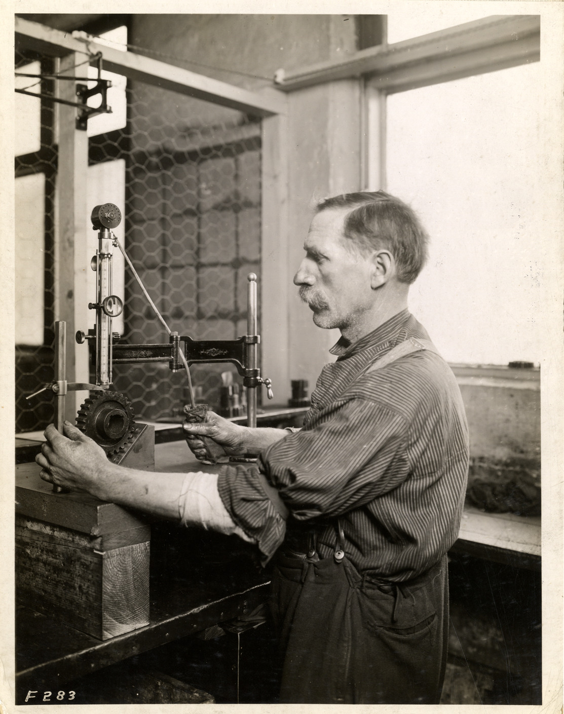 Favorite this☆ Worker operating machine, Willys-Overland Company factory Description: View of a man operating a machine in the Willys-Overland Company factory. Handwritten on back: "Factories--Overland, ca. 1909." Details Resource ID: na040792 Subject: Automobile factories Willys-Overland Company Automobile industry workers Machinery Photographic prints Date Issued: 1909 (year approximate) Format: 1 photographic print mounted on fabric ; 9.5 x 7.5 in. Member of: National Automotive History Collection Filing Location: Factories--Overland Rights: Physical rights are retained by DPL. Copyright is retained in accordance with U.S. copyright laws.