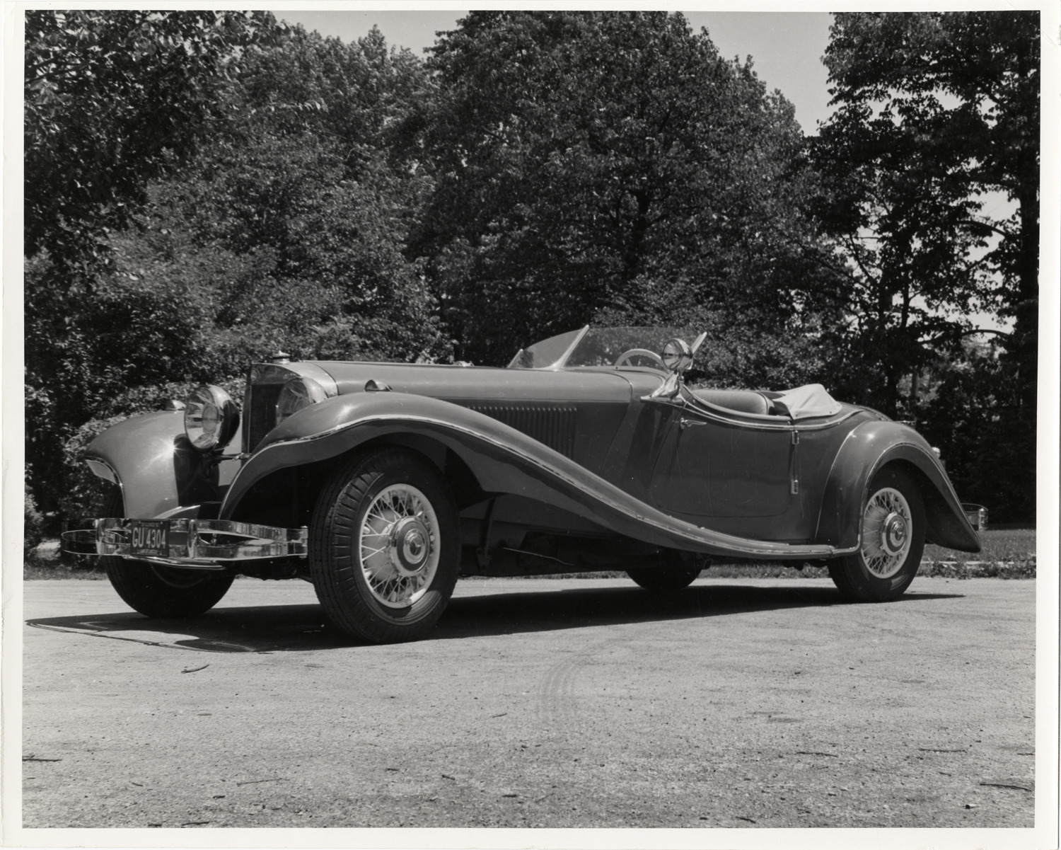 View of a Mercedes-Benz 500 or 540K roadster. Handwritten on back: "Mercedes 500 or 540K."