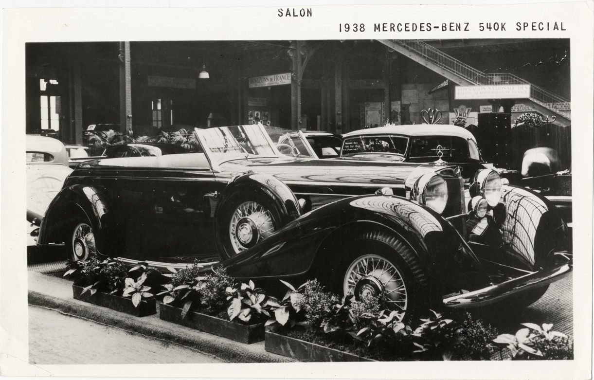 Favorite this☆ 1938 Mercedes-Benz 540K Special automobile Description: View of a 1938 Mercedes-Benz 540K Special car in showroom. Typed on front: "Salon. 1938 Mercedes-Benz 540K Special." Handwritten on back: "Mercedes-Benz, 1938. See Dashboard Mag., Aug. 1961 for further details." Details Resource ID: na040988 Subject: Mercedes automobiles Photographic prints Date Issued: Unknown year Format: 1 photographic print ; 5.25 x 8 in. Member of: National Automotive History Collection Filing Location: Mercedes-Benz Rights: Physical rights are retained by DPL. Copyright is retained in accordance with U.S. copyright laws.