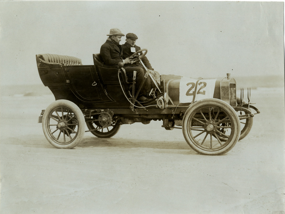 View of P.A. Fogarty and passenger in a 1906 Acme car no. 22. Stamped on back: "Photo by F. Ed. Spooner, 1536 B'way, telephone 6536-38th St., New York, N.Y." Handwritten on back: "P.A. Fogarty in 30 h.p. Acme. Acme, 1906."