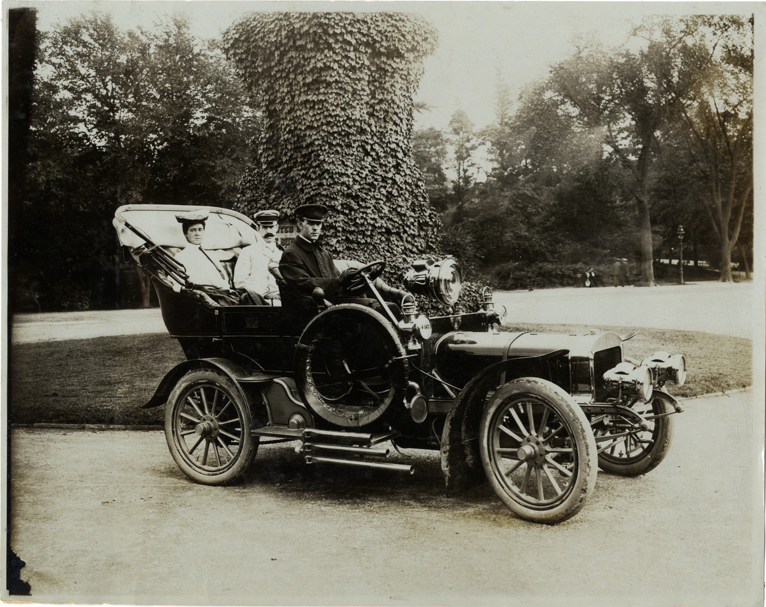 Favorite this☆ Motorists posing in Acme automobile Description: View of driver and passengers posing in an Acme car. Stamped on back: "Photo by F. Ed. Spooner, 1536 B'way, telephone 6536-38th St., New York, N.Y." Handwritten on back: "Acme, ca. 1906." Details Resource ID: na041318 Creator: Spooner, F. Ed. Subject: Automobiles Acme Motor Car Company Photographers--New York (State)--New York Photographic prints Date Issued: Unknown year Format: 1 photographic print ; 8 x 10 in. Member of: National Automotive History Collection Lazarnick Collection Filing Location: General photograph files, Acme Rights: Physical rights are retained by DPL. Copyright is retained in accordance with U.S. copyright laws.