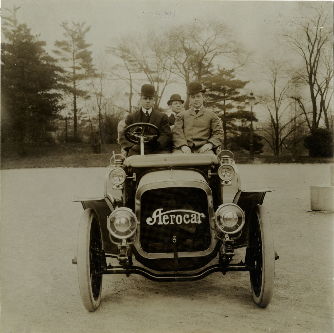 Favorite this☆ Motorist posing in 1906 Aerocar automobile Description: Front view of motorists posing in a 1906 Aerocar automobile. Handwritten on back: "Aerocar, 1906." Details Resource ID: na041383 Subject: Automobiles Aerocar Company (Detroit, Mich.) Photographic prints Date Issued: Unknown year Format: 1 photographic print ; 7.5 x 7.5 in. Member of: National Automotive History Collection Lazarnick Collection Filing Location: General photograph files, Aerocar Rights: Physical rights are retained by DPL. Copyright is retained in accordance with U.S. copyright laws.