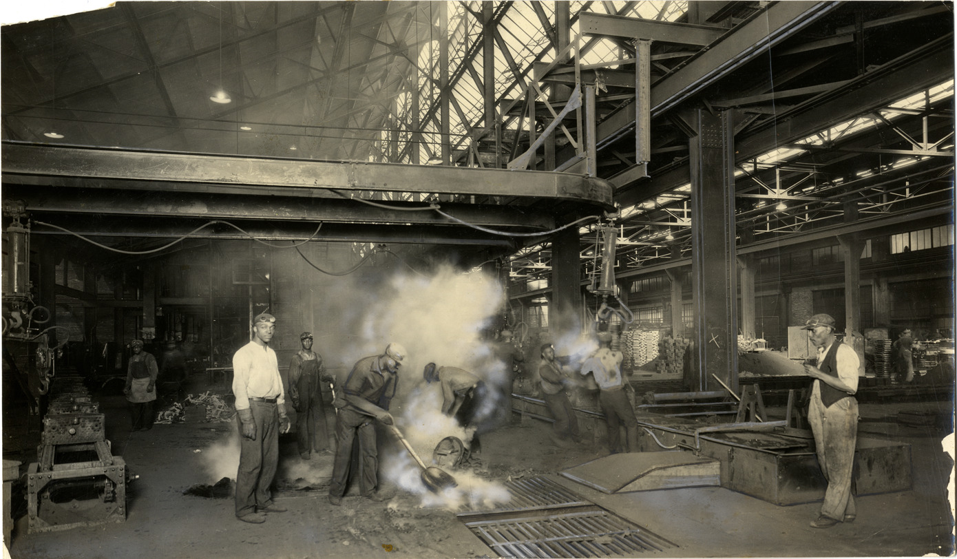 Favorite this☆ Workers at Studebaker foundry Description: View of men working at Studebaker foundry. Handwritten on back: "Factories--Studebaker, 1924." Details Resource ID: na041410 Subject: African American automobile industry workers Foundry workers Foundries Studebaker automobile Studebaker Corporation Automobile factories Photographic prints Date Issued: 1924 Format: 1 photographic print ; 5.5 x 9.25 in. Member of: National Automotive History Collection Filing Location: African Americans Negative Number: 11096 F-2 Rights: Physical rights are retained by DPL. Copyright is retained in accordance with U.S. copyright laws.