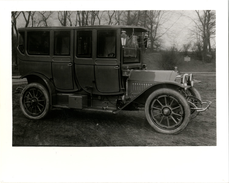 View of a 1912 Amplex car. Label on back: "1912 Amplex, American Simplex Co., Mishawaka, In."