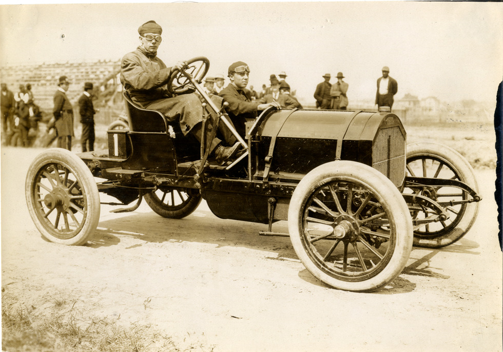 Favorite this☆ Driver and passenger posing in Apperson racecar Description: View of a driver and passenger posing in Apperson car no. 1. Grandstand and spectators in background. Handwritten on back: "Apperson, ca. 1906." Details Resource ID: na041585 Subject: Automobiles, Racing Apperson Brothers Automobile Company Photographic prints Date Issued: Unknown year Format: 1 photographic print ; 4.5 x 6.5 in. Member of: National Automotive History Collection Lazarnick Collection Filing Location: General photograph files, Apperson Rights: Physical rights are retained by DPL. Copyright is retained in accordance with U.S. copyright laws.