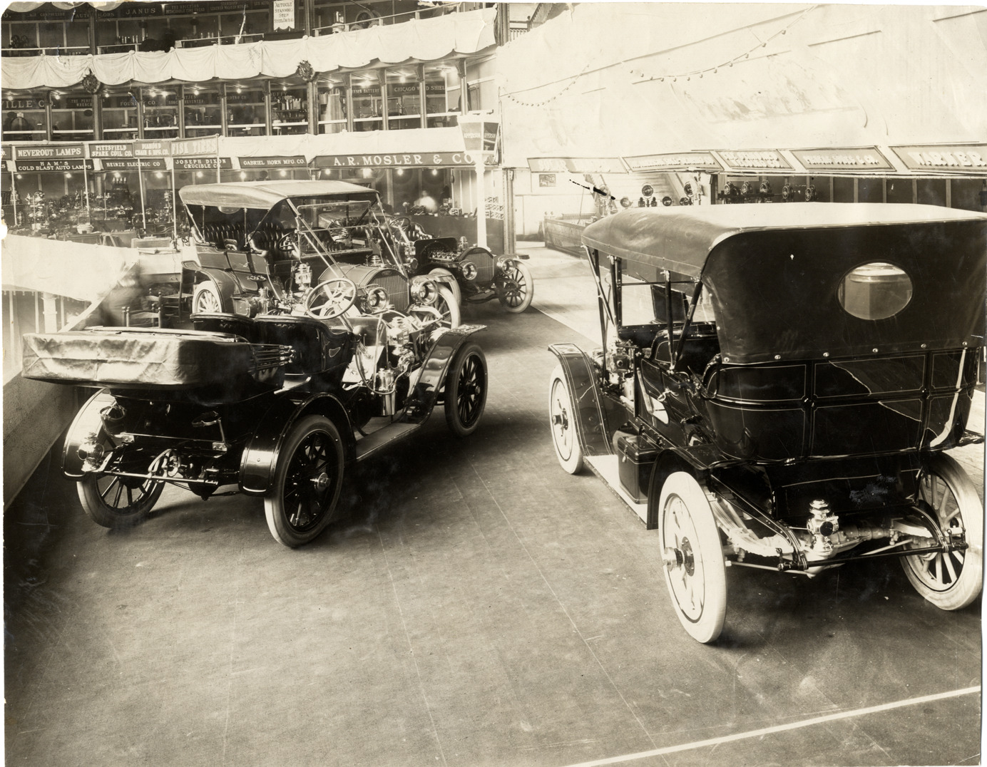 Favorite this☆ Apperson automobiles on display at trade show Description: View of Apperson cars on display at trade show. Stamped on back: "Spooner & Wells, Inc., photographers, telephones 3472-3473 Columbus, 1931 Broadway, New York." Handwritten on back: "Apperson, '09." Details Resource ID: na041598 Creator: Spooner & Wells Subject: Automobiles Apperson Brothers Automobile Company Trade shows Photographers--New York (State)--New York Photographic prints Date Issued: 1909 Format: 1 photographic print ; 7.25 x 9.25 in. Member of: National Automotive History Collection Lazarnick Collection Filing Location: General photograph files, Apperson Rights: Physical rights are retained by DPL. Copyright is retained in accordance with U.S. copyright laws.
