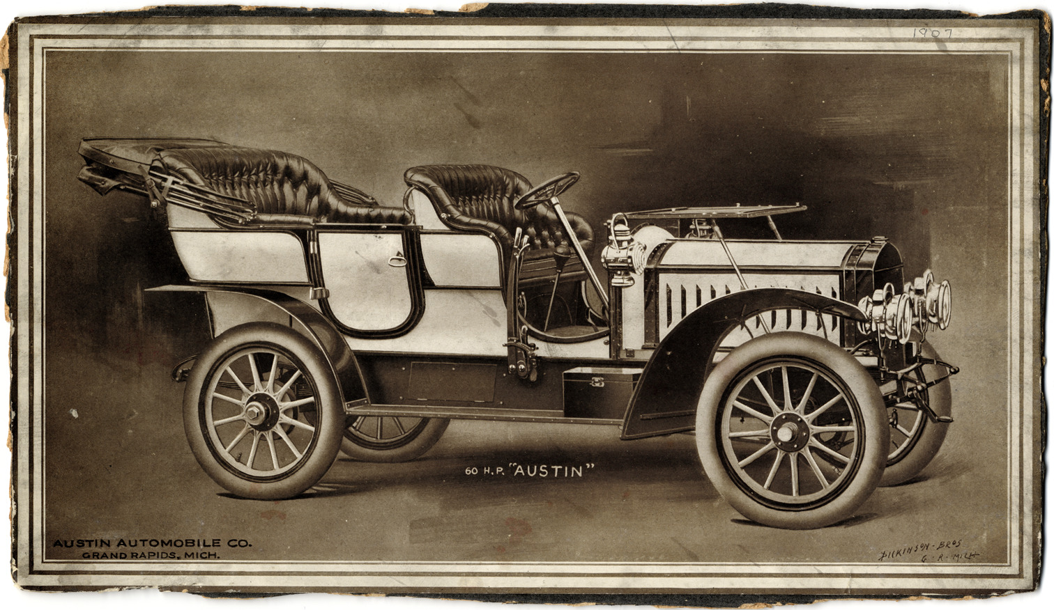 Favorite this☆ 1907 Austin automobile Description: Artist's depiction of a 1907 Austin car. Printed on front: "60 h.p. Austin. Austin Automobile Co., Grand Rapids, Mich. Dickinson Bros., G.R. Mich." Handwritten on back: "Austin, 1907. Model LX-T." Details Resource ID: na041704 Creator: Dickinson Bros. Subject: Automobiles Austin Automobile Company Photographers--Michigan--Grand Rapids Photographic prints Date Issued: Unknown year Format: 1 photographic print mounted on mat board ; image 5.5 x 10 in. Member of: National Automotive History Collection Filing Location: Austin Negative Number: 395 F-2 Rights: Physical rights are retained by DPL. Copyright is retained in accordance with U.S. copyright laws.