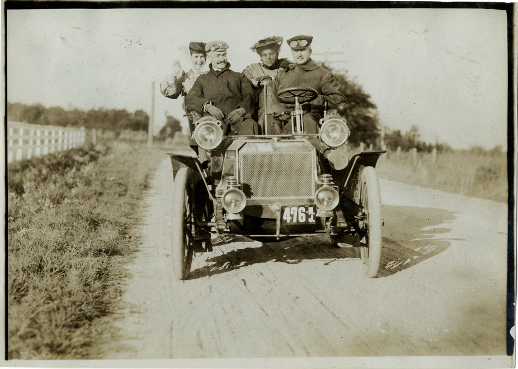 Favorite this☆ Motorists posing in 1905 Autocar automobile Description: View of motorists posing in a 1905 Autocar. Stamped on back: "Photo by F. Ed. Spooner, 1536 B'way, telephone 6536-38th St., New York, N.Y." Handwritten on back: "Autocar, 1905." Details Resource ID: na041743 Creator: Spooner, F. Ed. Subject: Automobiles Autocar Company Photographers--New York (State)--New York Photographic prints Date Issued: Unknown year Format: 1 photographic print ; 5 x 7 in. Member of: National Automotive History Collection Lazarnick Collection Filing Location: General photograph files, Autocar Rights: Physical rights are retained by DPL. Copyright is retained in accordance with U.S. copyright laws.
