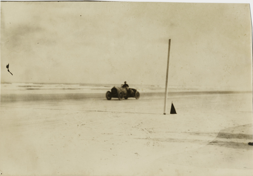 Erwin Bergdoll driving Benz racecar, 1908 Ormond-Daytona races