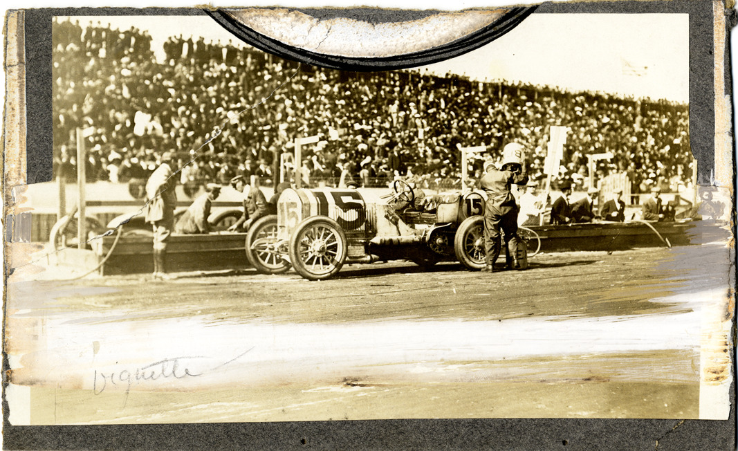 Favorite this☆ David Bruce-Brown and pit crew with Benz racecar Description: View of David Bruce-Brown and pit crew with Benz car no. 15. Spectators in grandstand in background. Handwritten on back: "Bruce-Brown in Benz. Winter 1910. Grand Prix." Details Resource ID: na041843 Subject: Automobiles, Racing Benz & Cie. Automobile racing Pit crews Photographic prints Date Issued: 1910 Format: 1 photographic print mounted on mat board ; image 4 x 7 in. Member of: National Automotive History Collection Filing Location: Benz racing cars Rights: Physical rights are retained by DPL. Copyright is retained in accordance with U.S. copyright laws.