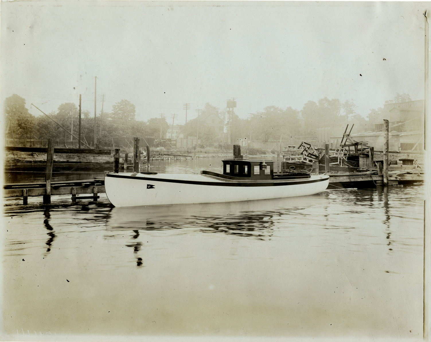 Favorite this☆ Motorboat Description: View of an unidentified motorboat. Dock in background. Handwritten on back: "Boats and boating." Details Resource ID: na041940 Subject: Motorboats Boats and boating Photographic prints Date Issued: Unknown year Format: 1 photographic print ; 8 x 10 in. Member of: National Automotive History Collection Filing Location: Boats and boating Rights: Physical rights are retained by DPL. Copyright is retained in accordance with U.S. copyright laws.