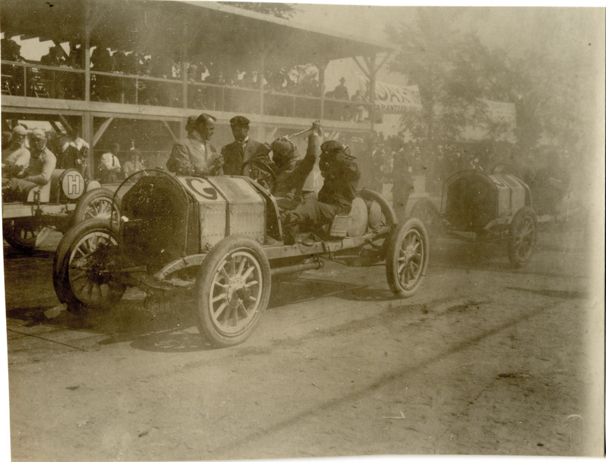 Favorite this☆ Louis Strang in 1909 Buick Model 10 racecar Description: View of Louis Strang and passenger in a 1909 Buick Model 10 racecar no. G on track. Officials stand behind car; spectators in grandstand in background. Handwritten on back: "Buick, 1909. Model 10. G., Strang, Buick." Details Resource ID: na042190 Subject: Buick automobile Automobiles, Racing Grandstands Photographic prints Date Issued: 1909 Format: 1 photographic print ; 4.5 x 6 in. Member of: National Automotive History Collection Filing Location: Buick, 1909 Negative Number: 1,161 Rights: Physical rights are retained by DPL. Copyright is retained in accordance with U.S. copyright laws.