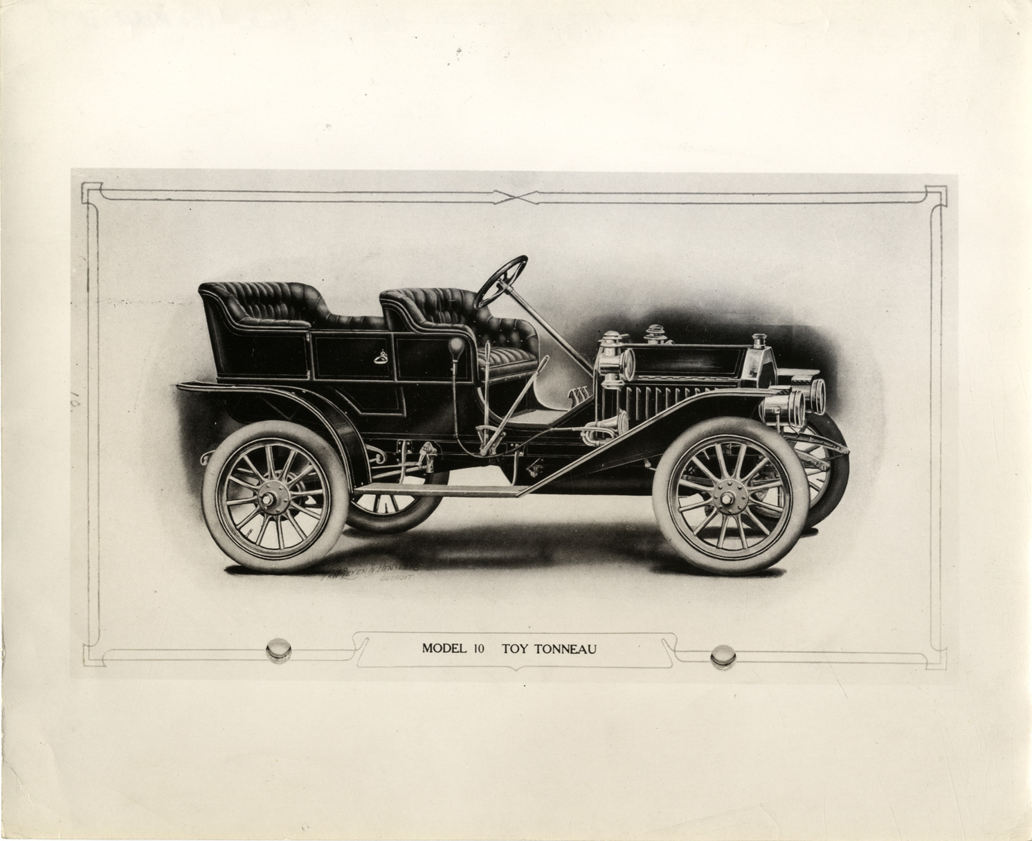 Favorite this☆ 1910 Buick Model 10 automobile Description: Artist's depiction of a 1910 Buick Model 10 tonneau car. Printed on front: "Model 10, toy tonneau." Handwritten on back: "Buick, 1910 Model 10." Details Resource ID: na042236 Subject: Buick automobile Photographic prints Date Issued: Unknown year Format: 1 photographic print ; 8 x 10 in. Member of: National Automotive History Collection Filing Location: Buick, 1910 Rights: Physical rights are retained by DPL. Copyright is retained in accordance with U.S. copyright laws.
