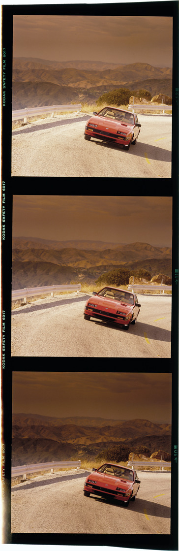 Favorite this☆ Nissan 300ZX automobile Description: Three views of a man driving a Nissan 300ZX coupe on a mountain road. Label on sleeve: "Nissan, Nissan 300ZX, 1983-89." Details Resource ID: na042351 Creator: Boulevard Photographic (Firm) Subject: Nissan 300ZX automobile Mountain roads Advertising--Automobiles Transparencies Date Issued: 1983 to 1989 Format: 1 transparency : col. ; 7.25 x 2.5 in. Member of: National Automotive History Collection Mickey McGuire and Jim Northmore Boulevard Photographic Collection Filing Location: Nissan, 15:21 Rights: Physical rights are retained by DPL. Copyright is retained in accordance with U.S. copyright laws.