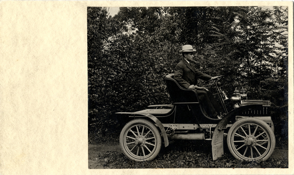 Favorite this☆ A.E. Wells in 1905 Cadillac Model F automobile Description: View of A.E. Wells posing in 1905 Cadillac Model F car. Handwritten on back: "Single cylinder Cadillac, 1905. A.E. Wells, Ithaca, N.Y. 1905 Cadillac, Model F. 1 cy., 10 hp., 2-p. runabout, detachable tonneau." Details Resource ID: na042466 Subject: Cadillac automobile Photographic prints Date Issued: Unknown year Format: 1 photographic print mounted on stock ; image 3.75 x 4 in. Member of: National Automotive History Collection Filing Location: Cadillac, 1905 Rights: Physical rights are retained by DPL. Copyright is retained in accordance with U.S. copyright laws.