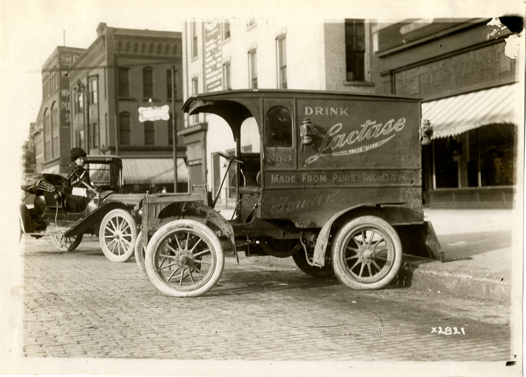 Favorite this☆ 1905 Cadillac truck Description: View of a 1905 Cadillac truck. "Drink Lactase, trade mark. No. 3. Made from pure [undecipherable]. Towar." Handwritten on back: "MT--Cadillac, ca. 1905." Details Resource ID: na042467 Subject: Trucks Cadillac Motor Car Company Photographic prints Date Issued: Unknown year Format: 1 photographic print ; 5 x 7 in. Member of: National Automotive History Collection Lazarnick Collection Filing Location: General photograph files, Motor trucks--Cadillac Rights: Physical rights are retained by DPL. Copyright is retained in accordance with U.S. copyright laws.