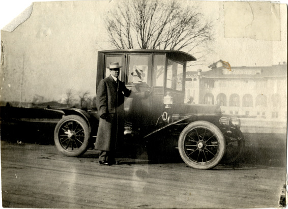 Favorite this☆ Man posing with 1910 Cadillac automobile Description: View of a man posing with a 1910 Cadillac car. Typed on back: "Cadillac." Handwritten on back: "Special sample closed body I bought from Henry Leland & put on a four cylinder Cadillac, one of the first closed bodies in Detroit." Details Resource ID: na042517 Subject: Cadillac automobile Photographic prints Date Issued: Unknown year Format: 1 photographic print ; 2.75 x 3.75 in. Member of: National Automotive History Collection Filing Location: Cadillac, 1910 Rights: Physical rights are retained by DPL. Copyright is retained in accordance with U.S. copyright laws.