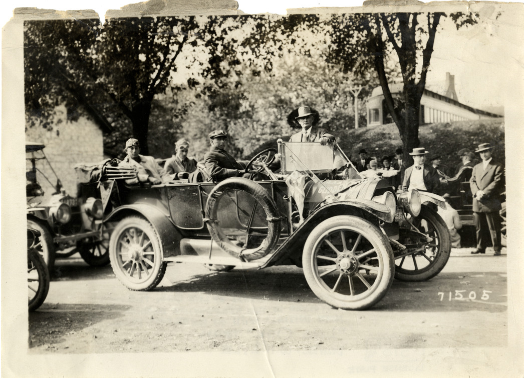 W.H. Lyle and motorists posing in 1912 Cadillac automobile, 1911 Glidden Tour