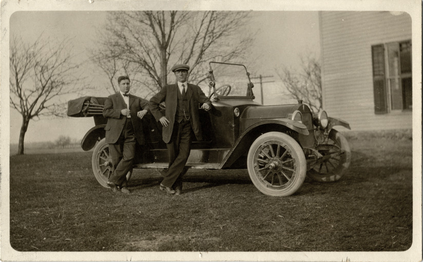 Favorite this☆ Men posing with 1914 Case automobile Description: View of two men posing with a 1914 Case car. Handwritten on back: "Photographer: George Klein, Eastman Kodak executive & photographer, c. 1914." Details Resource ID: na042751 Creator: Klein, George Subject: Automobiles J.I. Case Company Photographic prints Date Issued: 1914 (year approximate) Format: 1 photographic print ; 3.5 x 5.5 in. Member of: National Automotive History Collection Filing Location: Case Negative Number: 15,640 F-2 Rights: Physical rights are retained by DPL. Copyright is retained in accordance with U.S. copyright laws.