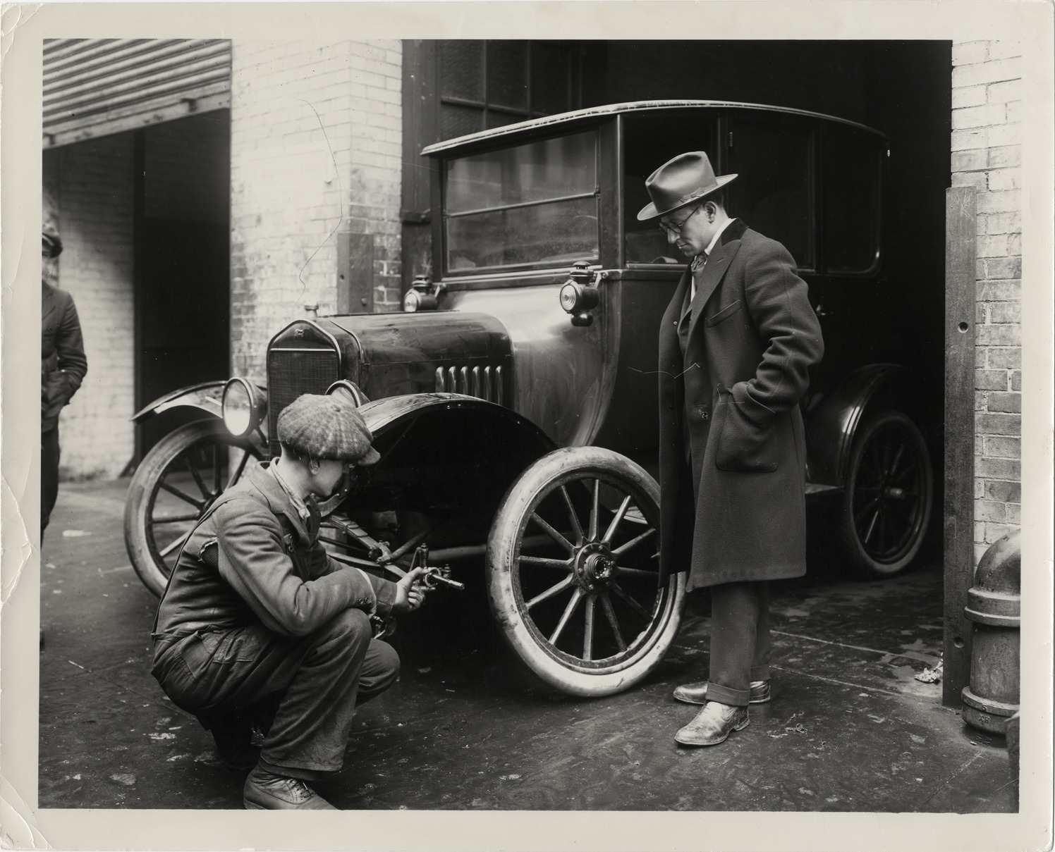 Favorite this☆ Repairman and customer with Ford automobile at service station Description: View of repairman and customer looking at Ford car at service station. Details Resource ID: na042826 Subject: Ford automobile Automobile repair shops Service stations Automobiles--Maintenance and repair Photographic prints Date Issued: Unknown year Format: 1 photographic print ; 8 x 10 in. Member of: National Automotive History Collection Filing Location: Maintenance and repair Rights: Physical rights are retained by DPL. Copyright is retained in accordance with U.S. copyright laws.