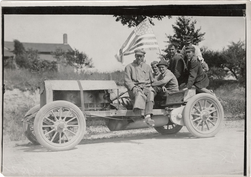 Favorite this☆ Motorists posing in Chadwick automobile Description: View of motorists posing in Chadwick car on rural dirt road. One man holds an American flag. Stamped on back: "Spooner & Wells, Inc., photographers, telephones 3472-3473 Columbus, 1931 Broadway, New York." Handwritten on back: "Chadwick, June 1908." Details Resource ID: na042860 Creator: Spooner & Wells Subject: Automobiles Chadwick Engineering Works Flags--United States Photographers--New York (State)--New York Photographic prints Date Issued: 1908-06 Format: 1 photographic print ; 5 x 7 in. Member of: National Automotive History Collection Filing Location: Chadwick Rights: Physical rights are retained by DPL. Copyright is retained in accordance with U.S. copyright laws.