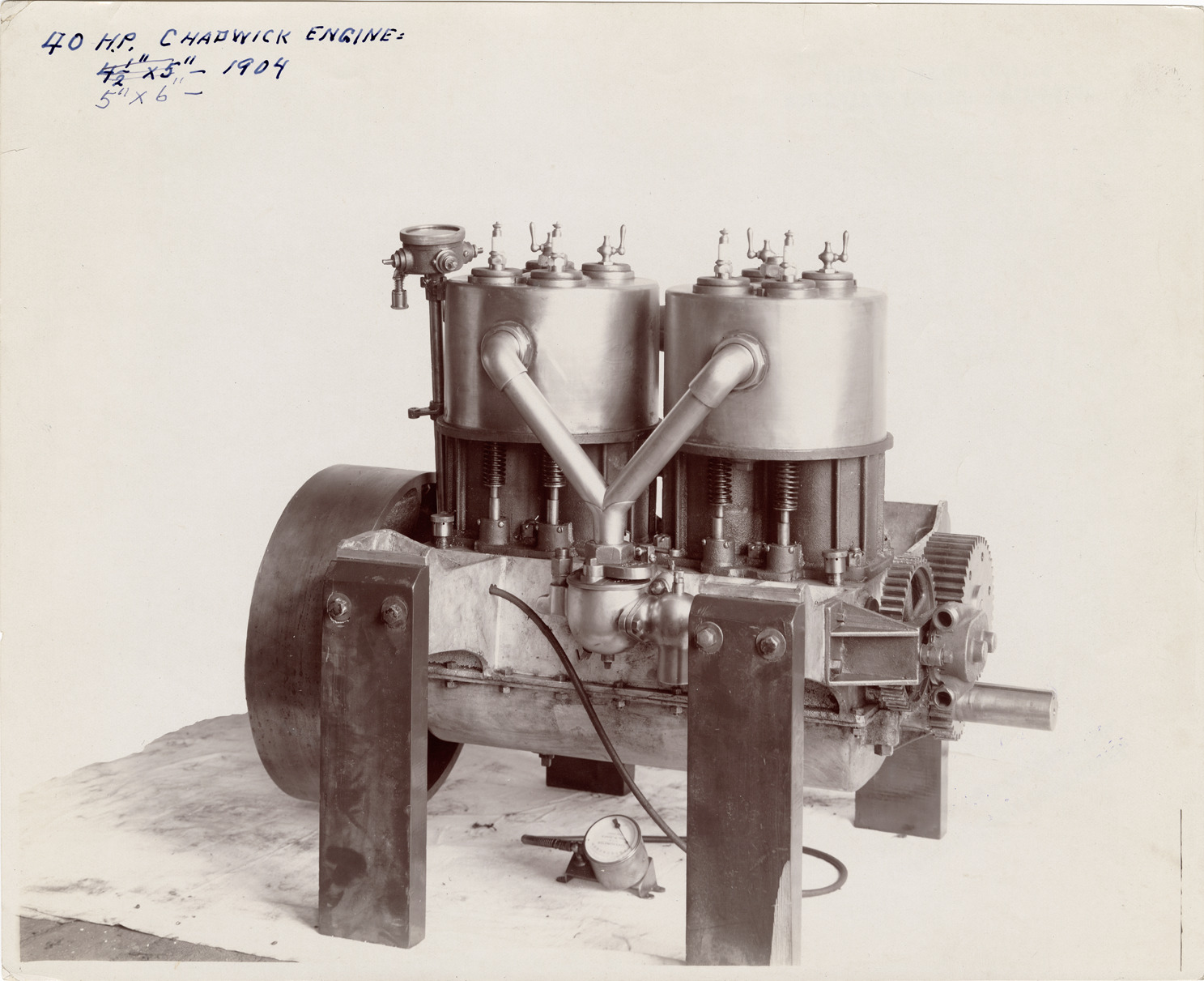 Favorite this☆ Engine, 1904 Chadwick automobile Description: View of a 1904 Chadwick car engine. Handwritten on front: "40 h.p. Chadwick engine, 1904. 5" x 6"." Stamped on back: "Fairmount Engineering Works, 3207 to 11 Spring Garden Street, Phila." Details Resource ID: na042882 Subject: Automobiles--Motors Chadwick Engineering Works Photographic prints Date Issued: Unknown year Format: 1 photographic print ; 8 x 10 in. Member of: National Automotive History Collection Filing Location: Chadwick Rights: Physical rights are retained by DPL. Copyright is retained in accordance with U.S. copyright laws.