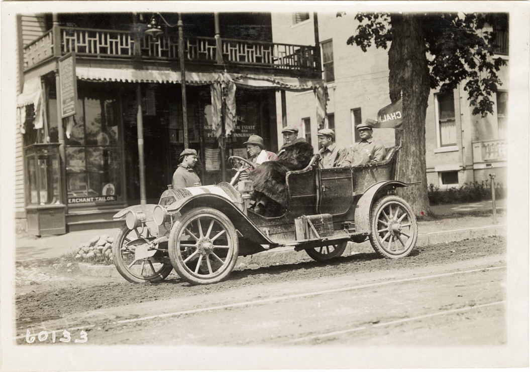 Favorite this☆ Motorists in Chalmers automobile Description: View of motorists in a Chalmers car. Storefront in background. Stamped on back: "Spooner & Wells, Inc., photographers, telephones 3472-3473 Columbus, 1931 Broadway, New York." Handwritten on back: "Chalmers, ca. 1910." Details Resource ID: na042936 Creator: Spooner & Wells Subject: Automobiles Chalmers Motor Company Photographers--New York (State)--New York Photographic prints Date Issued: Unknown year Format: 1 photographic print ; 5 x 7 in. Member of: National Automotive History Collection Lazarnick Collection Filing Location: General photograph files, Chalmers, 1910 Rights: Physical rights are retained by DPL. Copyright is retained in accordance with U.S. copyright laws.