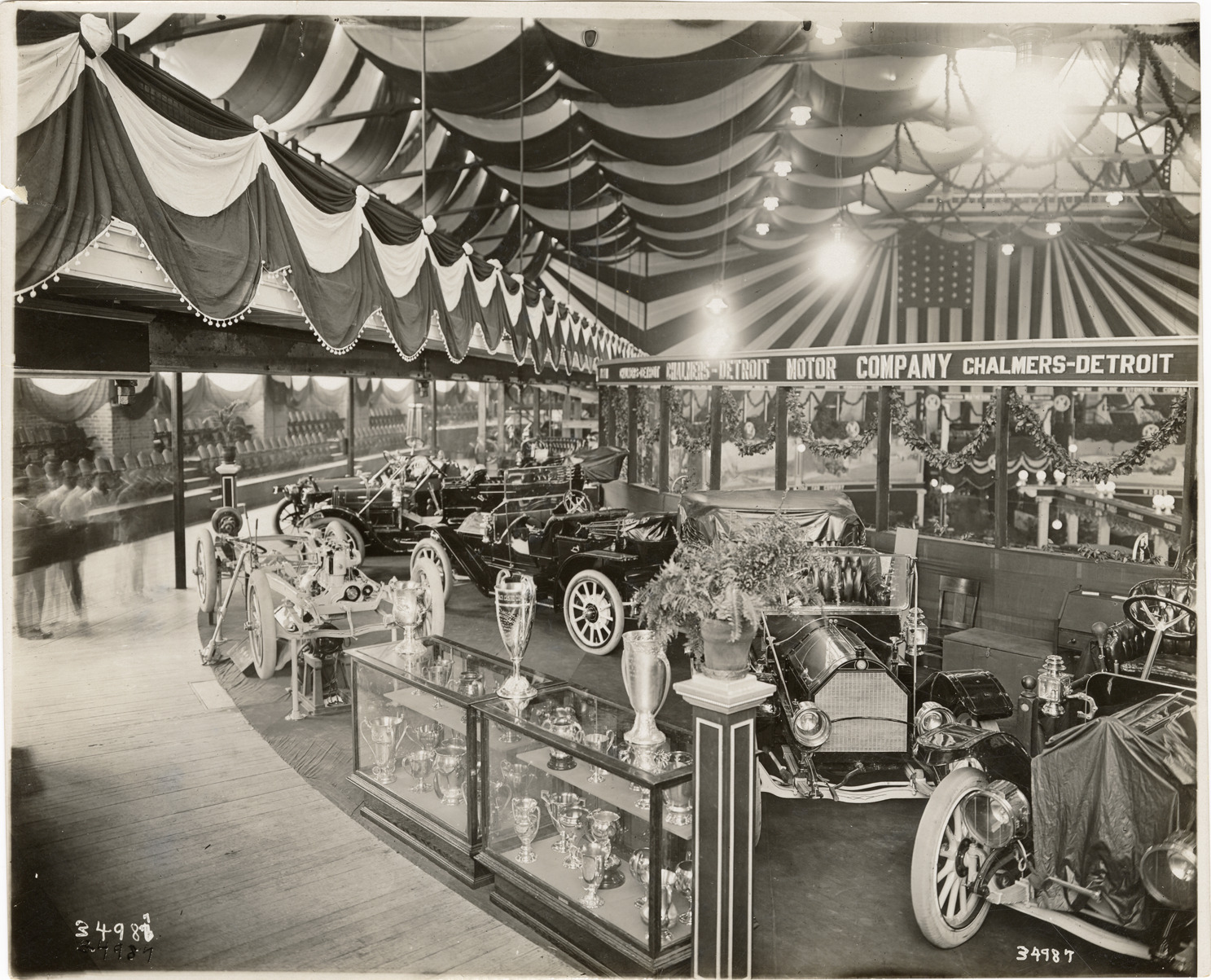 Favorite this☆ 1910 Chalmers-Detroit automobiles at trade show Description: View of Chalmers-Detroit cars on display at trade show. Display case with trophy cups in foreground. "Chalmers-Detroit Motor Company" sign in background. Handwritten on back: "Chalmers, 1910." Details Resource ID: na042939 Subject: Automobiles Chalmers-Detroit Motor Company Trade shows Photographic prints Date Issued: 1909 to 1910 Format: 1 photographic print ; 8 x 10 in. Member of: National Automotive History Collection Lazarnick Collection Filing Location: General photograph files, Chalmers, 1910 Rights: Physical rights are retained by DPL. Copyright is retained in accordance with U.S. copyright laws.