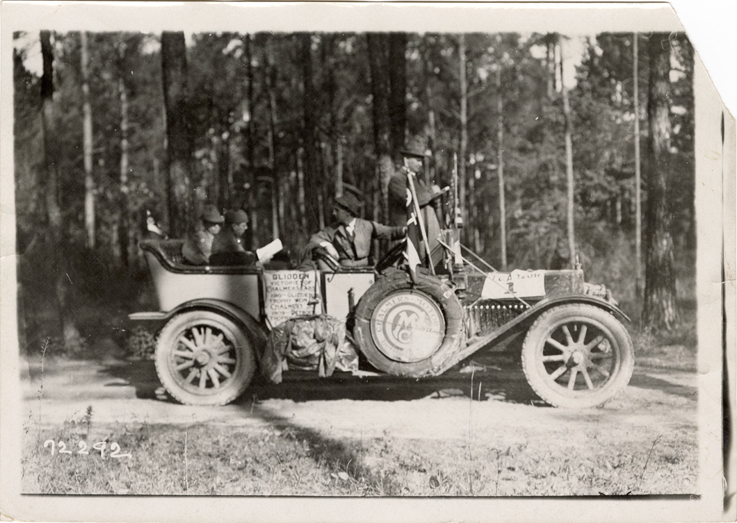 Motorists in Chalmers automobile, 1911 Touring Club of America Good Roads Tour