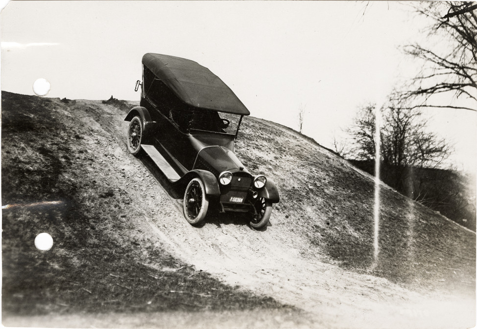 Favorite this☆ Chalmers automobile traveling downhill near Mack Avenue Description: View of a Chalmers car traveling downhill near Mack Ave. Handwritten on back: "Chalmers car on sandy hill out Mack Road. Taken for Chalmers Motor Co. Chalmers, ca. 1915." Details Resource ID: na043025 Subject: Automobiles--Michigan--Detroit Chalmers Motor Company Automobiles--Testing Photographic prints Date Issued: Unknown year Format: 1 photographic print ; 4.5 x 6.5 in. Member of: National Automotive History Collection Lazarnick Collection Filing Location: General photograph files, Chalmers, 1915 Rights: Physical rights are retained by DPL. Copyright is retained in accordance with U.S. copyright laws.