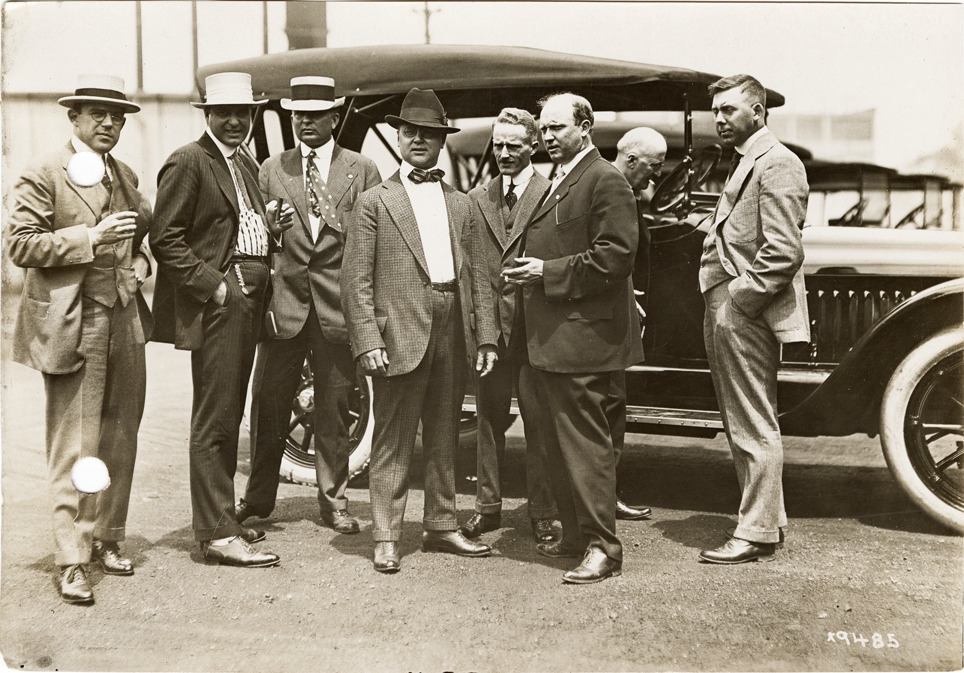 Favorite this☆ Men posing with Chalmers automobile at sales convention Description: View of several men posing with a Chalmers car during Chalmers Motor Company sales convention. Handwritten on back: "Convention at Chalmers Motor Co. Chalmers, ca. 1915." Details Resource ID: na043045 Subject: Automobiles--Michigan--Detroit Congresses and conventions--Michigan--Detroit Sales meetings--Michigan--Detroit Chalmers Motor Company Photographic prints Date Issued: 1915-11 Format: 1 photographic print mounted on fabric ; 4.5 x 6.5 in. Member of: National Automotive History Collection Lazarnick Collection Filing Location: General photograph files, Chalmers, 1915 Rights: Physical rights are retained by DPL. Copyright is retained in accordance with U.S. copyright laws.