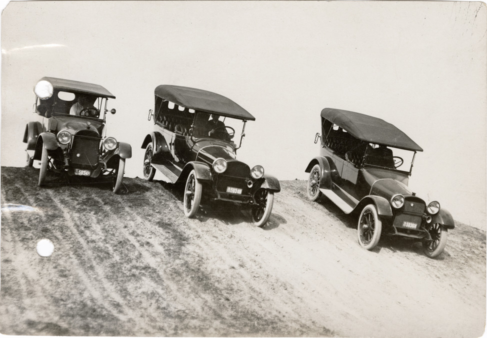 Favorite this☆ Chalmers automobiles traveling downhill near Mack Avenue Description: View of three Chalmers cars traveling downhill near Mack Ave. Handwritten on back: "Chalmers cars on sandy hill out Mack Road. Taken for Chalmers Motor Co. Chalmers, ca. 1915." Details Resource ID: na043049 Subject: Automobiles--Michigan--Detroit Chalmers Motor Company Automobiles--Testing Photographic prints Date Issued: Unknown year Format: 1 photographic print ; 4.5 x 6.5 in. Member of: National Automotive History Collection Lazarnick Collection Filing Location: General photograph files, Chalmers, 1915 Rights: Physical rights are retained by DPL. Copyright is retained in accordance with U.S. copyright laws.
