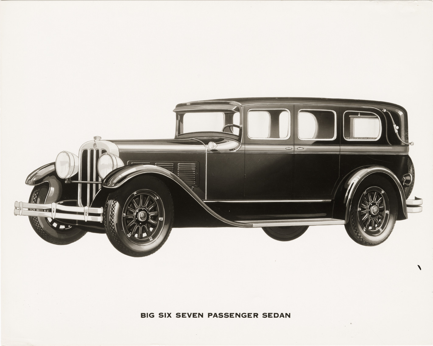 Artist's depiction of a Chandler Big Six sedan. Printed on front: "Big Six seven passenger sedan." Handwritten on back: "Chandler."