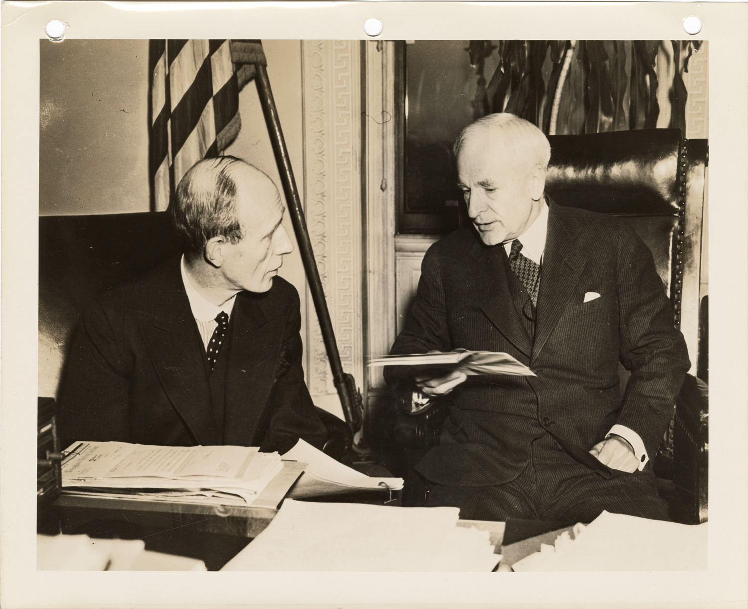 View of Viscount Lord Halifax presenting credentials to Cordell Hull, Secretary of State. Label on back: "His Britannic Majesty's Ambassador to the United States, Viscount Lord Halifax, presents his credentials to Secretary of State Cordell Hull upon his arrival in Washington, January 25, 1941."