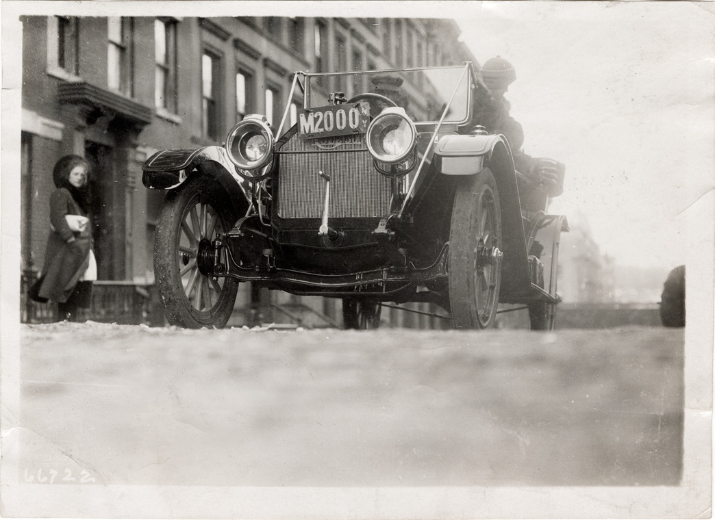 View of two men in a Cole 30 car. Stamped on back: "Spooner & Wells, Inc., photographers, telephones 3472-3473 Columbus, 1931 Broadway, New York." Handwritten on back: "Cole, ca. 1911."