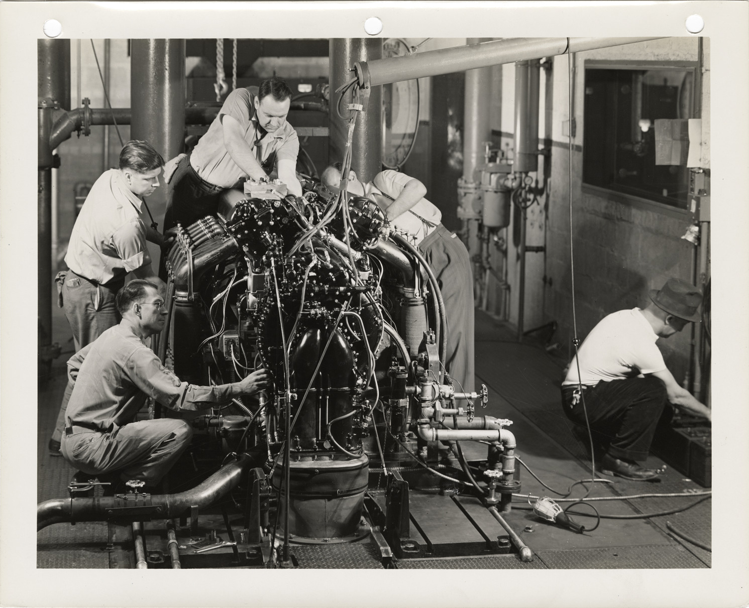 Part of a group of photographs depicting "a forty-week period wherein the Packard Motor Car Company brought the Rolls-Royce Merlin fighting engine from blue print to production."