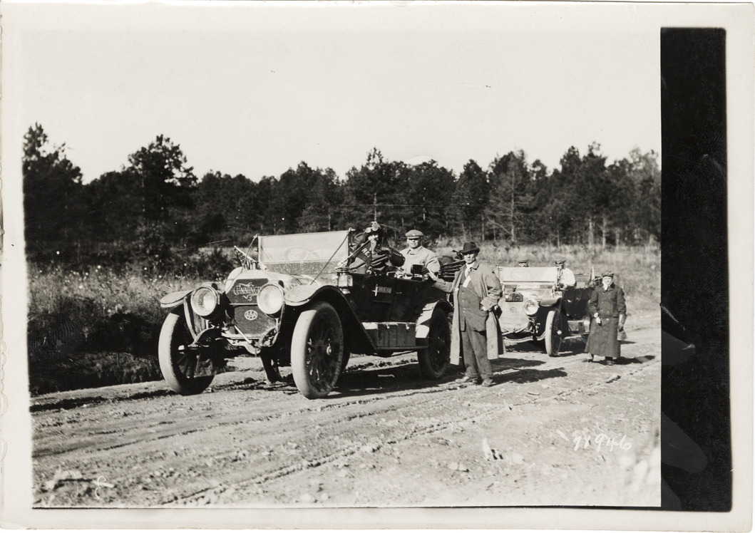 View of motorists posing with a Cunningham car. Stamped on back: "Spooner & Wells, Inc., photographers, telephones 3472-3473 Columbus, 1931 Broadway, New York." Handwritten on back: "Cunningham, ca. 1911."