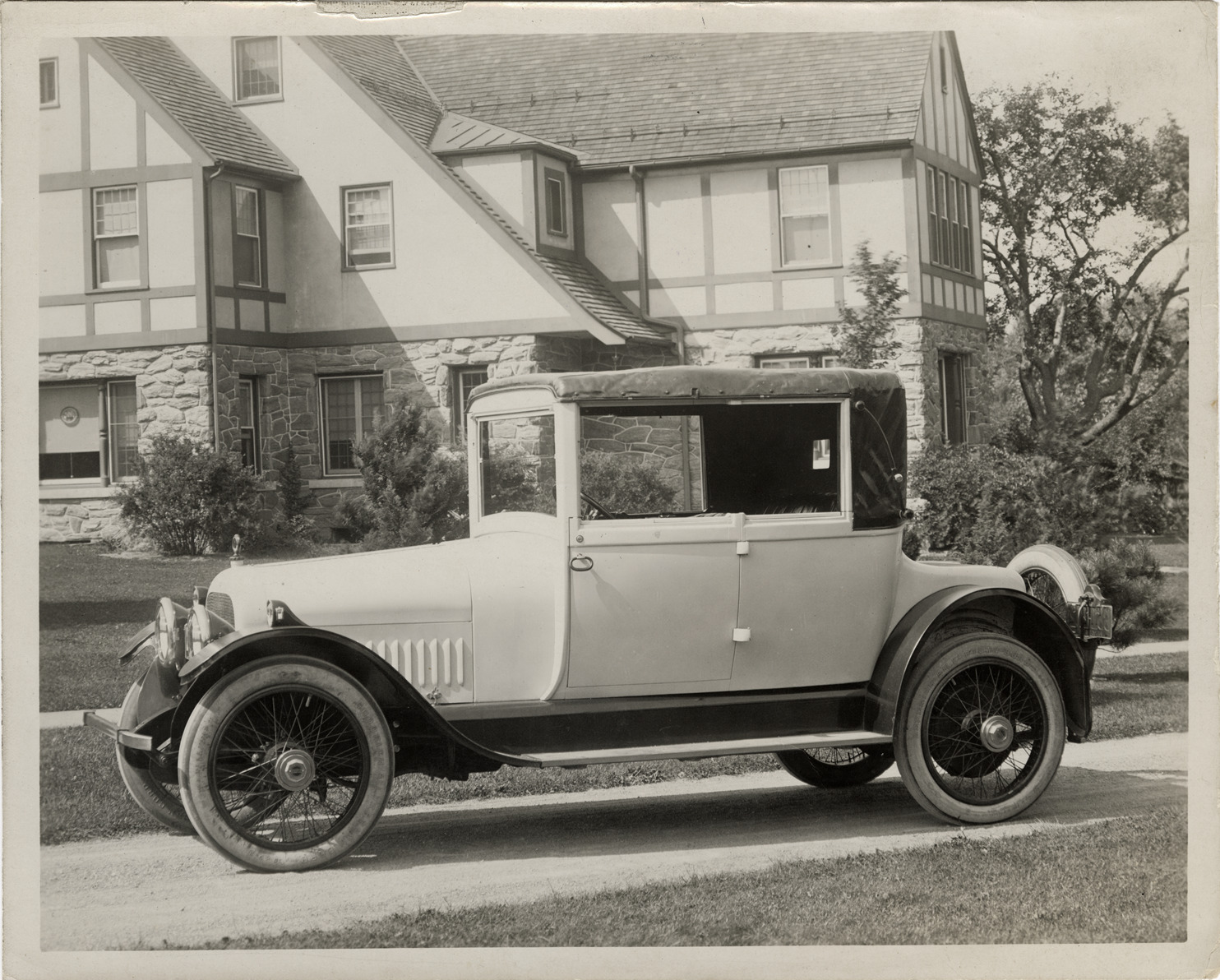 View of a 1916 Cunningham cabriolet or coupe. Stamped on back: "The Cunningham car. Style no. 35A. Model V. James Cunningham Son & Co. Rochester, N.Y." Handwritten on back: "1916 Cunningham Series V. Style #25A. Fully collapsible cabriolet &/or coupe. Cunningham, 1916."