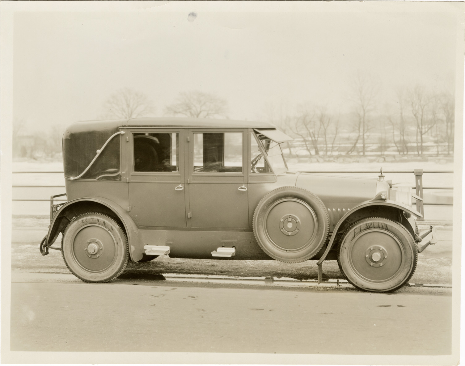 View of 1922 Cunningham Model V-4 cabriolet. Stamped on back: "The Cunningham car. Style no. 119. Model V-4. James Cunningham Son & Co. Rochester, N.Y." Handwritten on back: "1922 Cunningham, V4. Style #119A of 5-25-1922. Inside drive cabriolet (Style #64A with style #86A rear). Order #1649 for Mr. Strong of Rochester, N.Y."