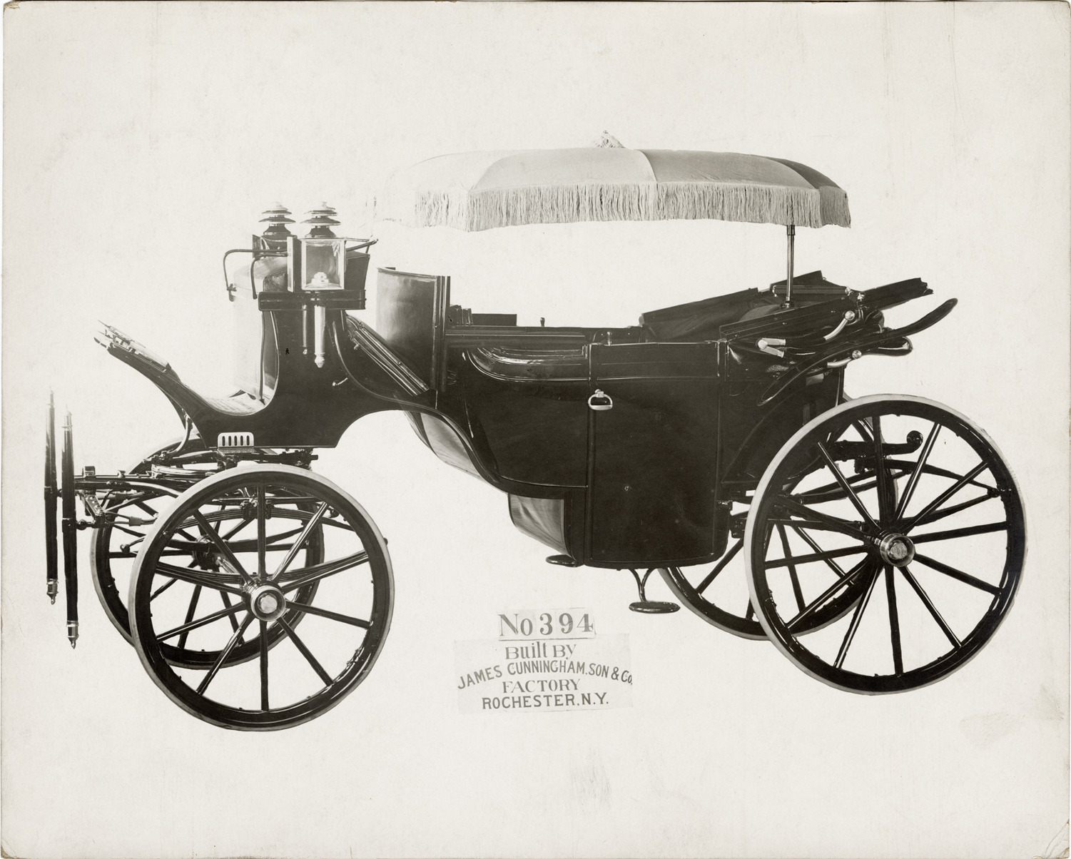 Favorite this☆ Cunningham carriage no. 394 Description: View of Cunningham horse-drawn carriage no. 394. Printed on front: "No. 394. Built by James Cunningham, Son & Co. Factory, Rochester, N.Y." Handwritten on back: "Landau." Details Resource ID: na043521 Subject: Carriages and carts Horse-drawn vehicles James Cunningham, Son & Company Photographic prints Date Issued: Unknown year Format: 1 photographic print ; 8 x 10 in. Member of: National Automotive History Collection Filing Location: Cunningham (Horse-drawn) Rights: Physical rights are retained by DPL. Copyright is retained in accordance with U.S. copyright laws.