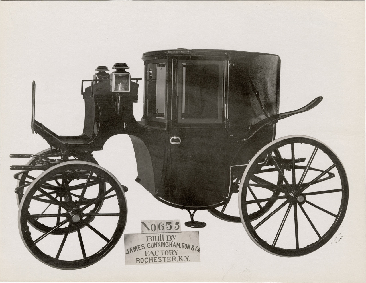 Favorite this☆ Cunningham carriage no. 655 Description: View of Cunningham horse-drawn carriage no. 655. Printed on front: "No. 655. Built by James Cunningham, Son & Co. Factory, Rochester, N.Y. J.L. Hill, photo." Details Resource ID: na043535 Creator: Hill, J.L. Subject: Carriages and carts Horse-drawn vehicles James Cunningham, Son & Company Photographic prints Date Issued: Unknown year Format: 1 photographic print ; 6.5 x 8.5 in. Member of: National Automotive History Collection Filing Location: Cunningham (Horse-drawn) Rights: Physical rights are retained by DPL. Copyright is retained in accordance with U.S. copyright laws.