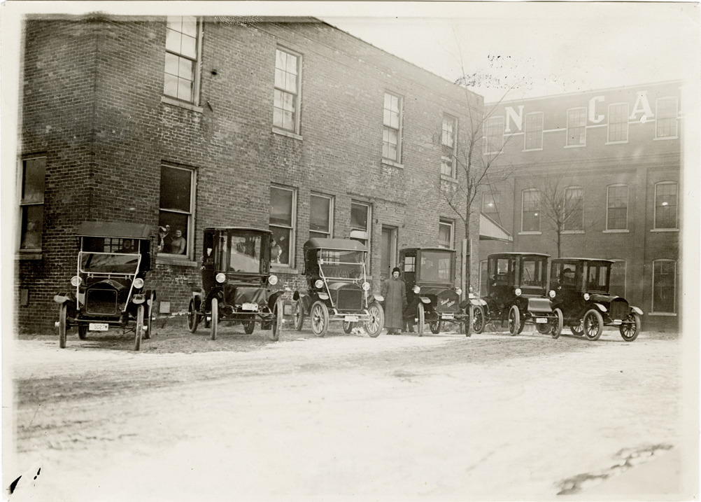 Favorite this☆ Detroit Electric automobiles parked in front of factory Description: View of several Detroit Electric cars parked in front of brick factory building. Handwritten on back: "Detroit Electric, ca. 1910. Detroit Electric cars in front of factory." Details Resource ID: na043662 Subject: Electric automobiles--Michigan--Detroit Anderson Carriage Company Anderson Electric Car Company Automobile factories--Michigan--Detroit Photographic prints Date Issued: Unknown year Format: 1 photographic print ; 4.75 x 6.75 in. Member of: National Automotive History Collection Lazarnick Collection Filing Location: General photograph files, Detroit Electric Negative Number: 1,970 F-2 Rights: Physical rights are retained by DPL. Copyright is retained in accordance with U.S. copyright laws.