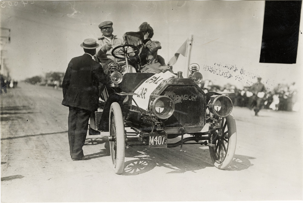 Favorite this☆ Motorists in Dragon automobile Description: View of motorists in Dragon car. "Official car" sign is displayed on car. Handwritten on back: "Dragon, Glidden, 1907." Details Resource ID: na043724 Subject: Automobiles Dragon Automobile Company Photographic prints Date Issued: Unknown year Format: 1 photographic print ; 4.5 x 6.75 in. Member of: National Automotive History Collection Lazarnick Collection Filing Location: General photograph files, Dragon Rights: Physical rights are retained by DPL. Copyright is retained in accordance with U.S. copyright laws.