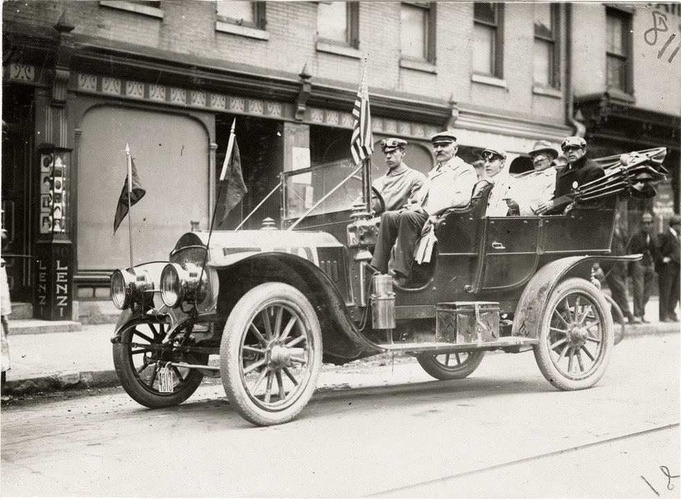 Favorite this☆ Motorists in posing Elmore automobile Description: View of motorists posing in Elmore car. Stamped on back: "Spooner & Wells, Inc., photographers, telephones 3472-3473 Columbus, 1931 Broadway, New York." Handwritten on back: "Elmore, ca. '09." Details Resource ID: na043742 Creator: Spooner & Wells Subject: Automobiles Elmore Manufacturing Company Photographers--New York (State)--New York Photographic prints Date Issued: Unknown year Format: 1 photographic print ; 4.75 x 6.75 in. Member of: National Automotive History Collection Lazarnick Collection Filing Location: General photograph files, Elmore Rights: Physical rights are retained by DPL. Copyright is retained in accordance with U.S. copyright laws.