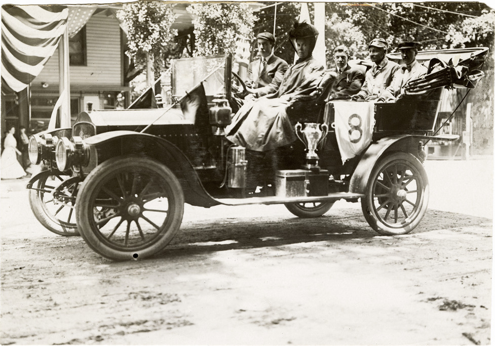 Favorite this☆ Motorists posing in Elmore automobile Description: View of motorists posing in Elmore car no. 8. Trophy cup is displayed on running board. Stamped on back: "Spooner & Wells, Inc., photographers, telephones 3472-3473 Columbus, 1931 Broadway, New York." Handwritten on back: "Elmore, ca. '08." Details Resource ID: na043744 Creator: Spooner & Wells Subject: Automobiles Elmore Manufacturing Company Photographers--New York (State)--New York Photographic prints Date Issued: Unknown year Format: 1 photographic print ; 4.5 x 6.5 in. Member of: National Automotive History Collection Lazarnick Collection Filing Location: General photograph files, Elmore Rights: Physical rights are retained by DPL. Copyright is retained in accordance with U.S. copyright laws.