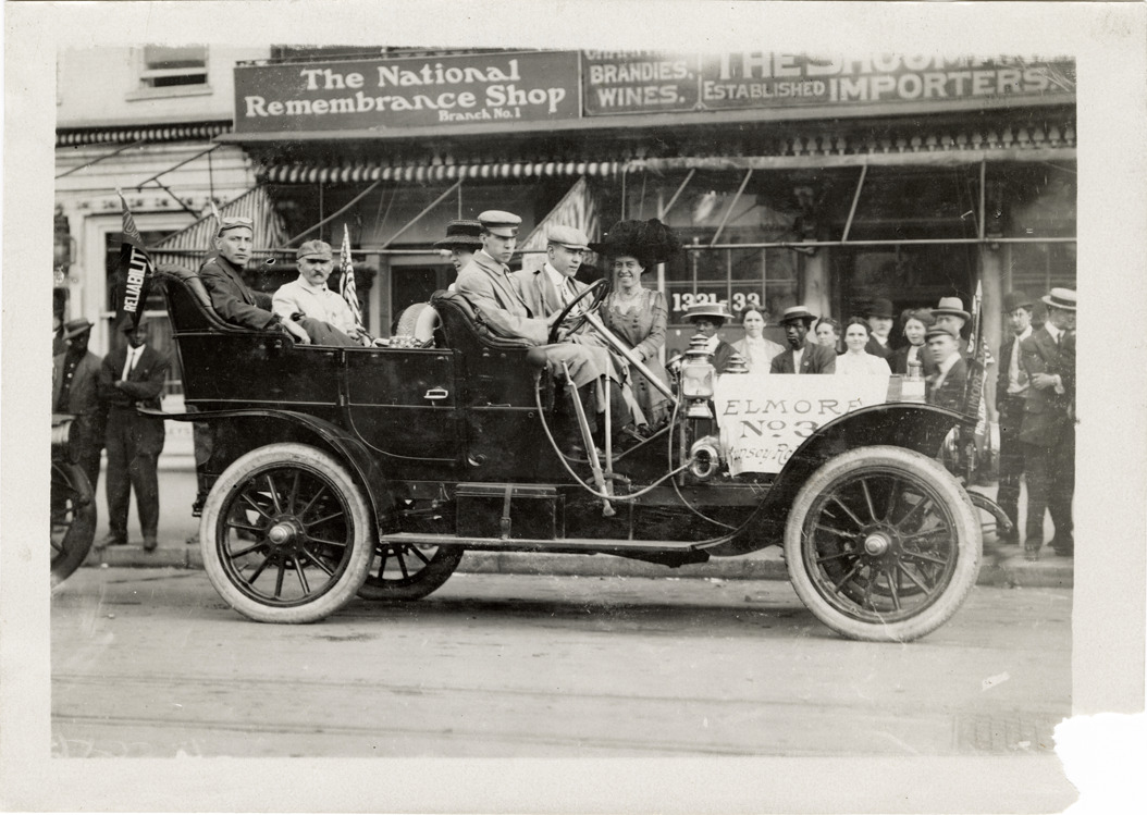 Favorite this☆ Motorists posing in Elmore automobile Description: View of motorists posing in Elmore car no. 3. Commercial buildings and onlookers in background. Handwritten on back: "Elmore, ca. '09." Details Resource ID: na043749 Subject: Automobiles Elmore Manufacturing Company Photographic prints Date Issued: Unknown year Format: 1 photographic print ; 5 x 7 in. Member of: National Automotive History Collection Lazarnick Collection Filing Location: General photograph files, Elmore Rights: Physical rights are retained by DPL. Copyright is retained in accordance with U.S. copyright laws.