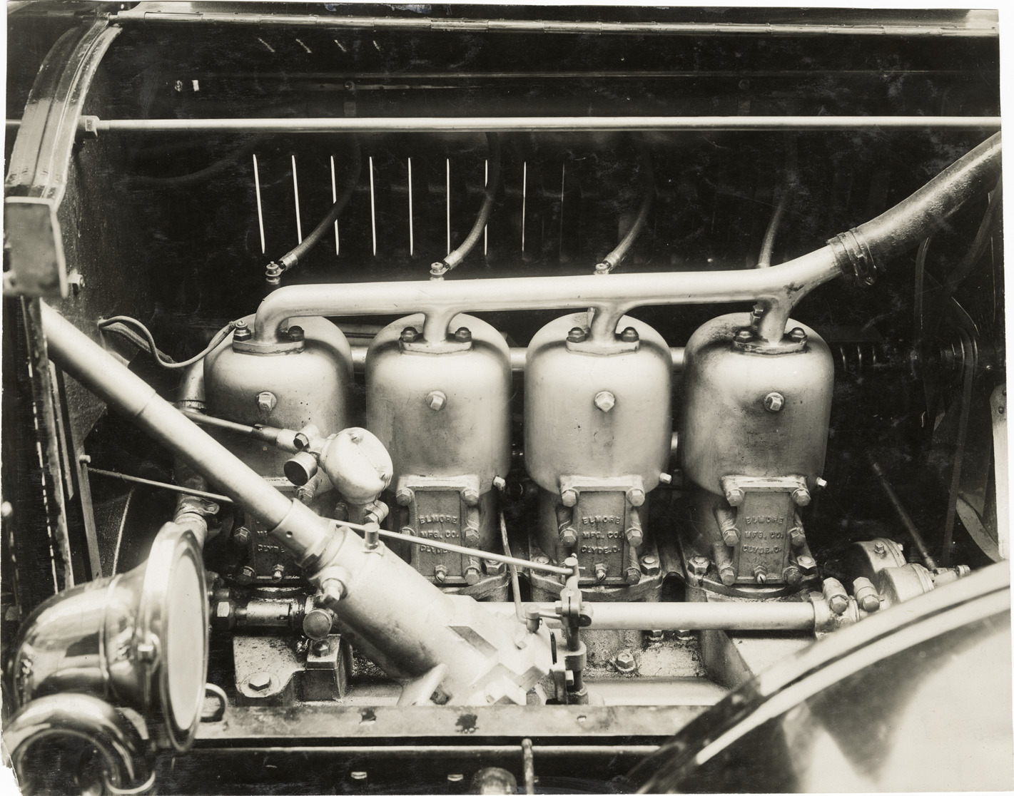 Favorite this☆ 1908 Elmore automobile engine Description: View of a 1908 Elmore car engine. Stamped on back: "Spooner and Wells, 1931 Broadway, New York, duplicates any time, enlargements all sizes, tel. 3472-3473 Col., credit appreciated." Handwritten on back: "Elmore motor, 1908." Details Resource ID: na043754 Creator: Spooner & Wells Subject: Automobiles--Motors Elmore Manufacturing Company Photographers--New York (State)--New York Photographic prints Date Issued: Unknown year Format: 1 photographic print ; 7.25 x 9.25 in. Member of: National Automotive History Collection Lazarnick Collection Filing Location: General photograph files, Elmore Rights: Physical rights are retained by DPL. Copyright is retained in accordance with U.S. copyright laws.