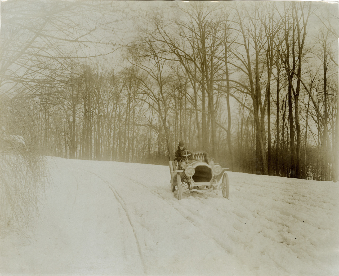 Favorite this☆ Motorist driving Packard automobile in snow Description: View of a man driving a Packard car in the snow. Stamped on back: "Photo by F. Ed. Spooner, 1536 B'way, telephone 6536-38th St., New York, N.Y." Handwritten on back: "Packard." Details Resource ID: na043893 Creator: Spooner, F. Ed. Subject: Packard automobile Automobile driving in winter Photographers--New York (State)--New York Photographic prints Date Issued: Unknown year Format: 1 photographic print ; 7.75 x 9.5 in. Member of: National Automotive History Collection Lazarnick Collection Filing Location: Packard Rights: Physical rights are retained by DPL. Copyright is retained in accordance with U.S. copyright laws.