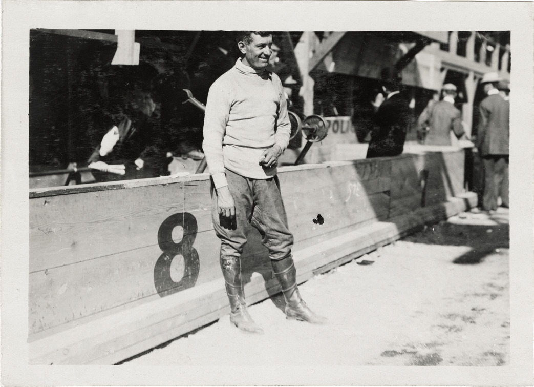 View of Billy Knipper standing on sidelines during the 1909 Lowell road race. Handwritten on back: "Billy Knipper. Races and racing--Lowell road race, 1909."